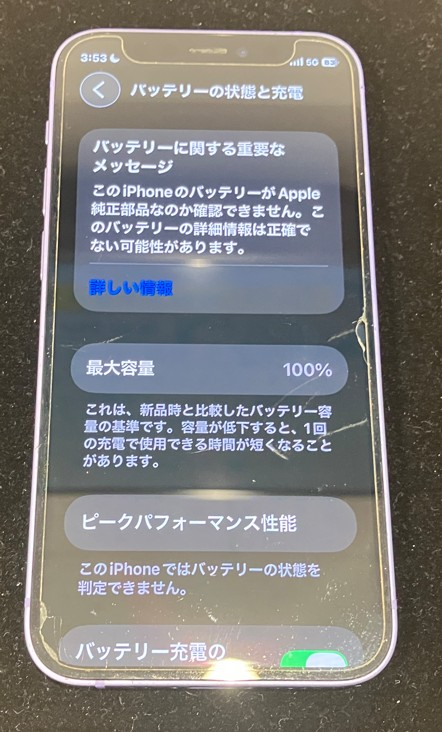 修理後は新品同様の電池持ちとなり、快適にご利用いただける状態に復旧しました。