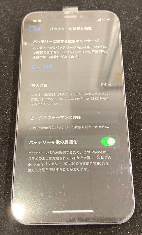 | 修理内容 | iPhone12 mini バッテリー交換 |