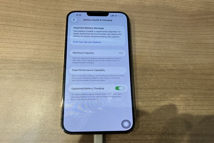 バッテリーの最大容量を確認したところ、71%まで低下しており、劣化がお見受け出来ます。