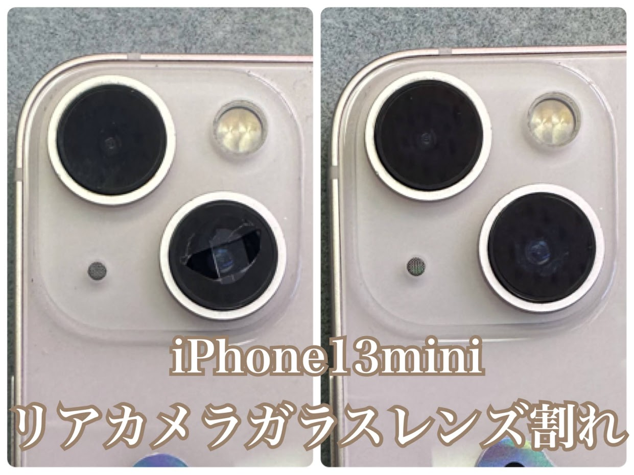 iPhone13miniのリアカメラガラスレンズ割れ修理を行いました。