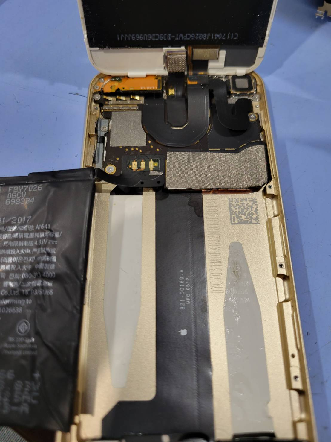 落下の衝撃で画面と本体を繋いでいるケーブルがちぎれてしまい、そこから不具合が出ていたという流れ⋯開けてみたところ実は断線という症例は少なくなく。