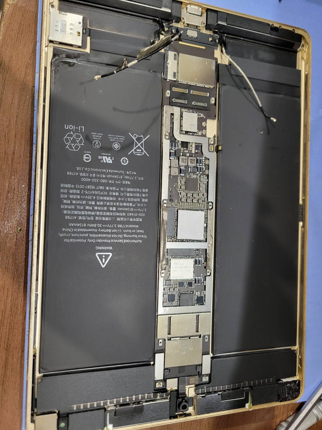 お写真は液晶を外し、バッテリーを外す場面となります。