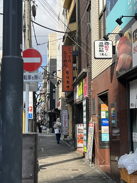 曲がりましたら、右手に「たんめんしゃきしゃき」がございますので、店の右側にある階段を3階までおあがりください。上がった先が錦糸町店となりま