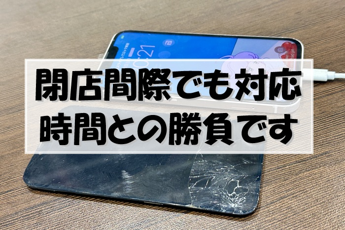 事前にお電話でお問い合わせをいただいた上でのご来店でしたが、閉店間際ということもあり、当日修理ではなく翌日返却での対応をご案内し、ご了承をいただいた上で端末をお預かりしています。