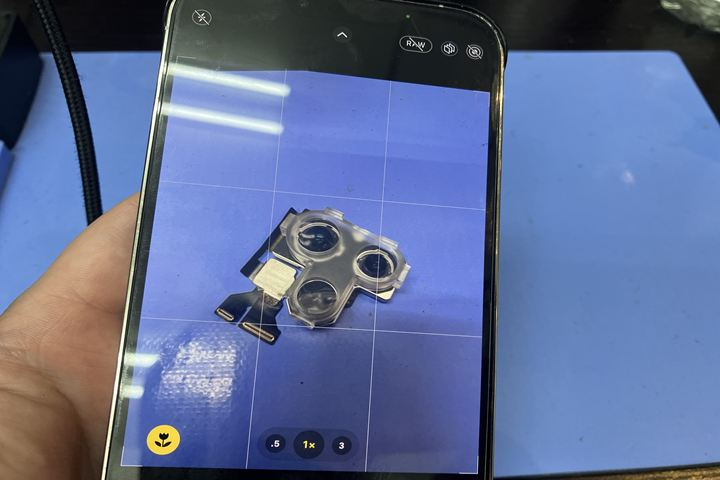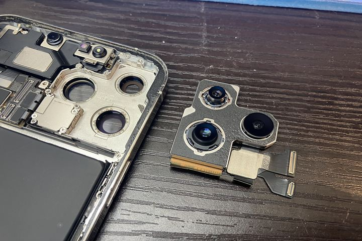 そのため「この状態でも修理ができるか」というご相談をいただきましたが、iPhone14 Proは画面側から分解して内部にアクセスできる構造のため、今回は背面には手を加えず、必要な部分のみ修理する形でご案内しました。