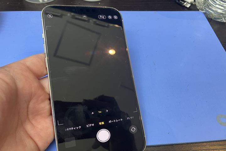 iPhone13Proにて外側のカメラが故障しており、カメラアプリを立ち上げても真っ暗な状態に...。