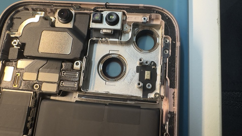 お持ち込みいただいた時は背面や内側のカメラに水が入っていた状態でした。