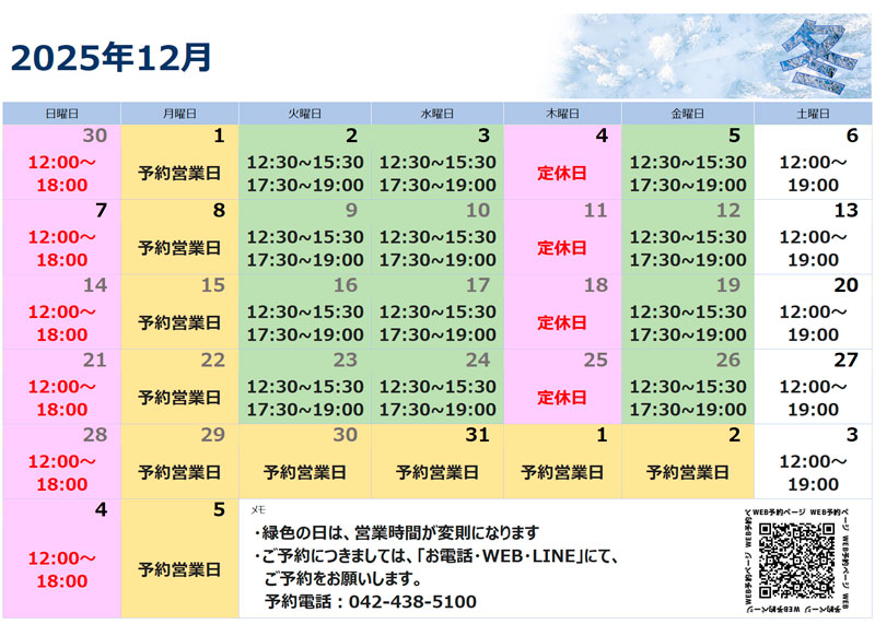(月曜日当日予約受付時間 11:00~15:00まで)